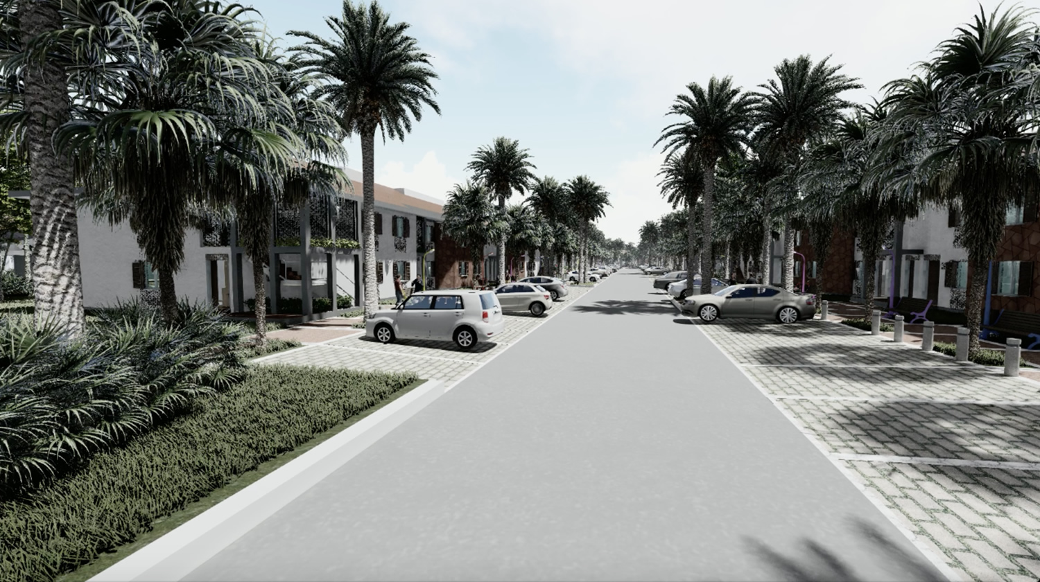 Este conjunto cuenta con 44543 sqft (4138m2) de construcción y las siguientes áreas descubiertas: parqueo para 100 autos, abundantes zonas verdes, zona infantil, y palapas, además de circulaciones peatonales. El proyecto es ecológico en sus tecnologías de ahorro y de generación de energía.